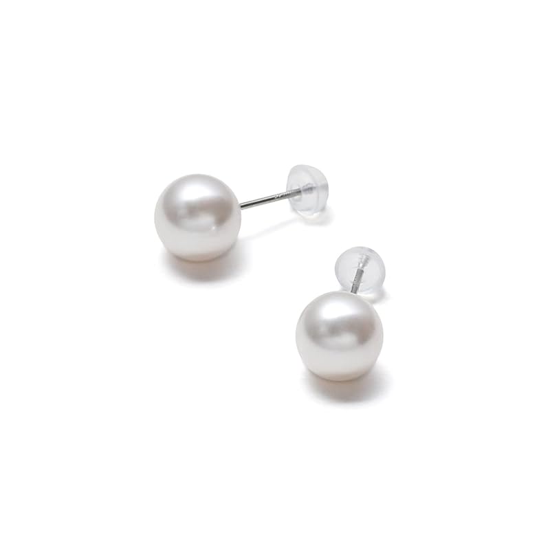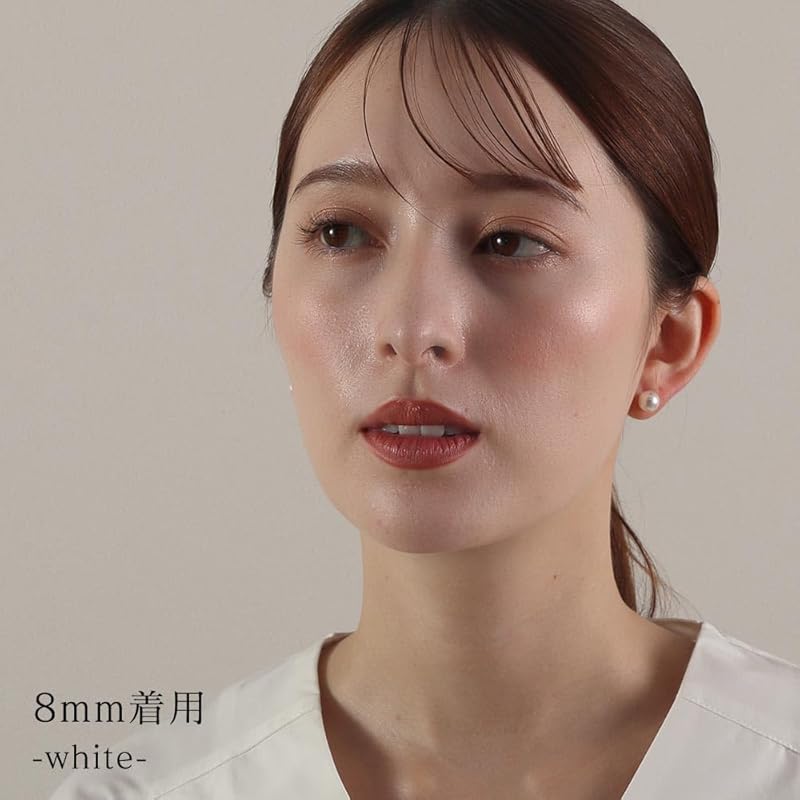 Domestic pearl earrings grand premium Compatible with metal allergies ladies pearl white gray black titanium silver K10WG platinum (White x K10 (white
