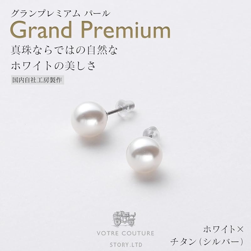 [VOTRE COUTURE] pearl earrings Luxury domestic product grand premium pearl ladies white titanium silver 8mm