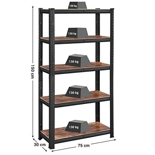 Стеллаж, 30 X 75 X 150 См, 650 Кг Грузоподъемность (130 кг на полку), Промышленный, Регулируемые Полки для Хранения, Для Гостиной, Кухни, Г