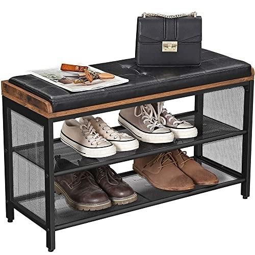 Скамья для обуви Мягкая скамья с сетчатой полкой Полка для обуви 80 X 30 X 48 см Прихожая Спальня Металл Экономия места Взо