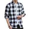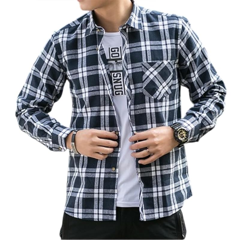 [PAFHL] shirt men's check tops casual long sleeve spring autumn Thin short big size Fashionable adult simple Going out trip M-3XL (Navy, 2XL)