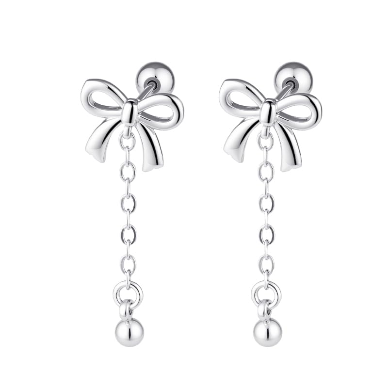 sway screw type earrings ladies Leave it on second piercing S925 silver Compatible with metal allergies platinum plated both ears cute screw type
