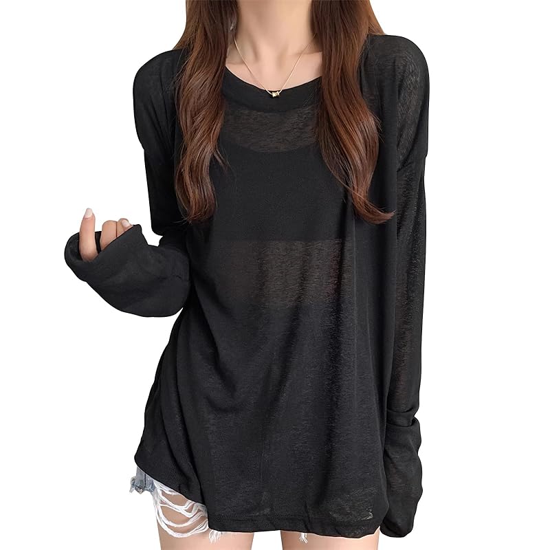 [A must-see for this season's layered style! [Sheer Blouse] With its simple yet extremely versatile design, this is an excellent sheer T-shirt that can be used as the main character of your outfit or as a subtle accent.We recommend wearing it as an inner layer for a lace shirt, which is essential for stylish girls, or layering it with a bra, or under underwear or a cami.The visible and hidden effect makes this T-shirt more stylish and classy.Mid-length tops can be worn with jeans at the hem, giving you a wide variety of ways to wear them, greatly expanding your range of matching options.A T-shirt blouse that is both cute and sexy.