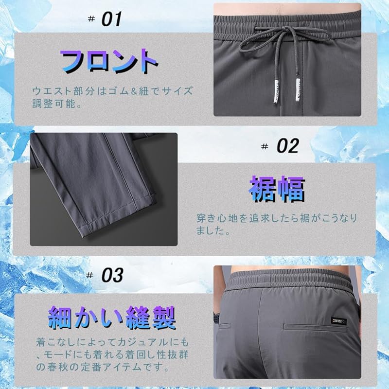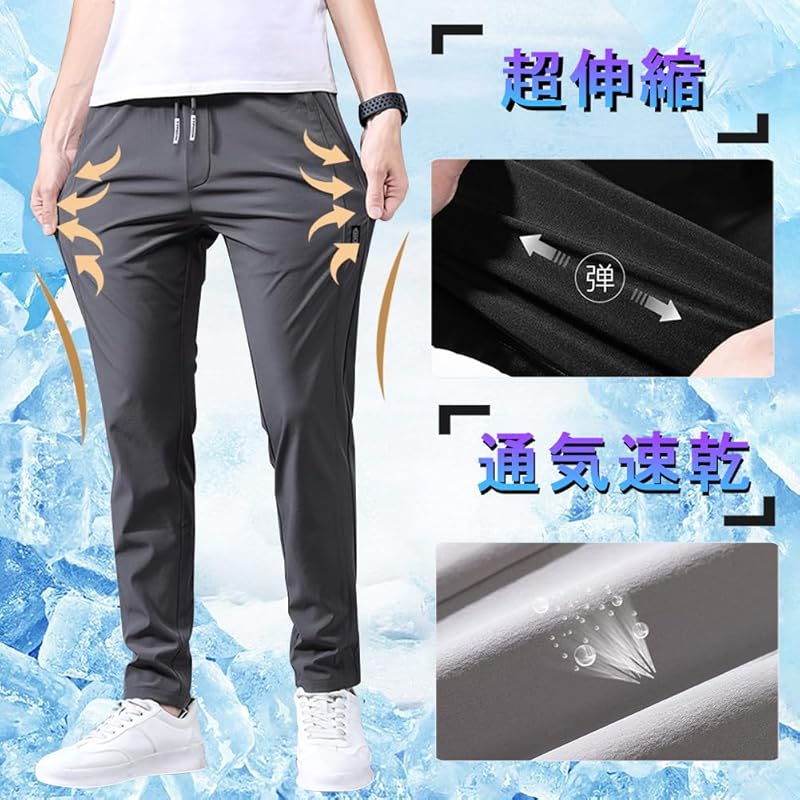 [Охлаждающее ощущение при прикосновении] Изготовлено из охлаждающей ткани, обладает охлаждающим ощущением, которое снижает температуру в момент соприкосновения с кожей, переворачивая общепринятое представление о лете! Мужские брюки-джоггеры, которые согреют вас летом.