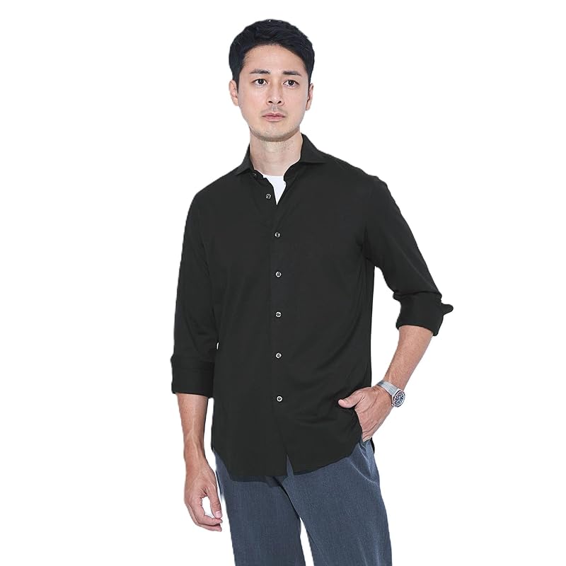 [United Arrows green label Relaxing] WEB limited JUST fit mercerization cut long sleeve shirt -antibacterial- 32116993122 0970 BLACK(09) L