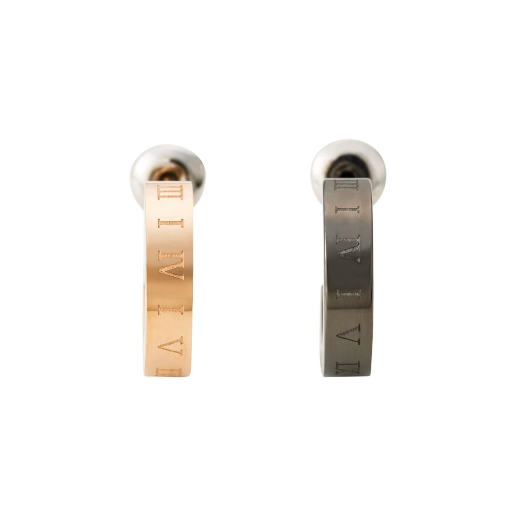 Surgical Stainless Steel Half Hoop Earrings with Roman Numerals Pink Black Set of 2 4SPE001GO 4SPE001BK [White Clover] & &