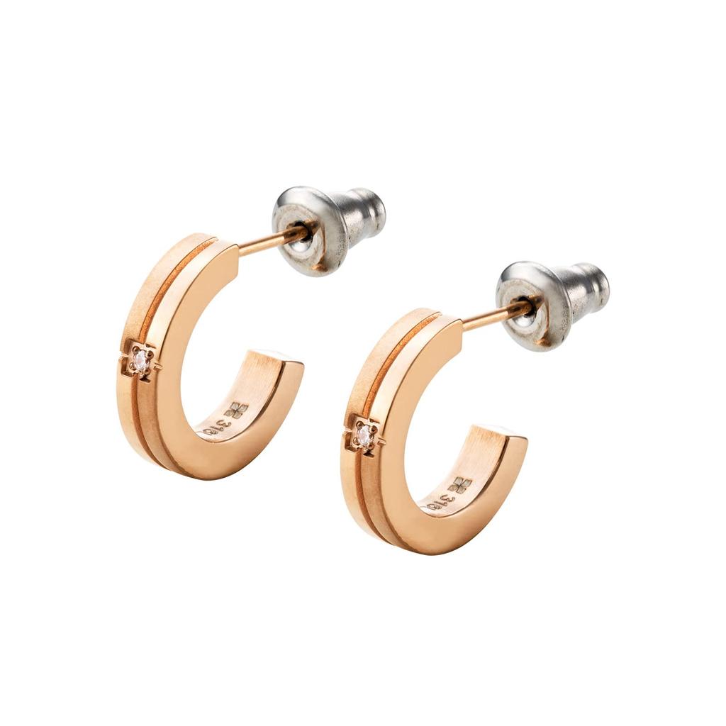 Хирургическая нержавеющая сталь Полурозовый Набор серег [Белый клевер], Сталь, Бриллиант, Кольцо, Крест, Матовый, и Розовый, 2, 4SPE002GO&4SPE002GO