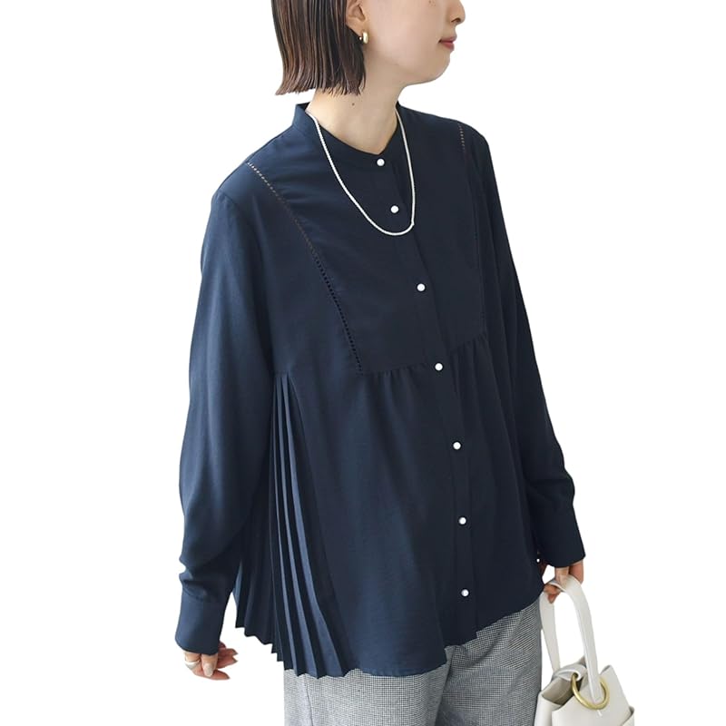 [Ships Ladies] SHIPS for women blouse Hand washable stretch georgette pleats 24SS ladies 311100734 dark blue M
