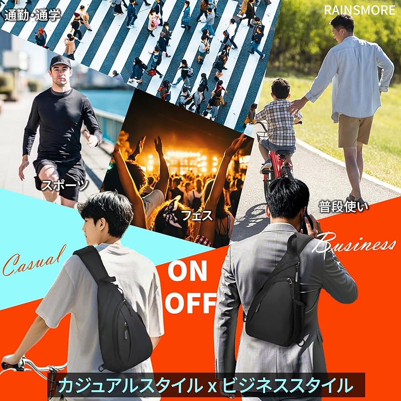The shoulder strap of the men's body bag is equipped with a smartphone pouch and mesh pocket, allowing you to separately store small items such as your mobile phone, keys, earphones, and transportation IC card.The smartphone pouch allows you to keep your smartphone in front of your chest even when worn on the back, allowing quick access when making calls or taking photos, and securely secures it in a dedicated pocket, which helps prevent it from falling and preventing theft.In addition, you can easily take out your smartphone even when your hands are occupied, such as when hiking or cycling, which relieves you from the stress of searching for it in your bag.
