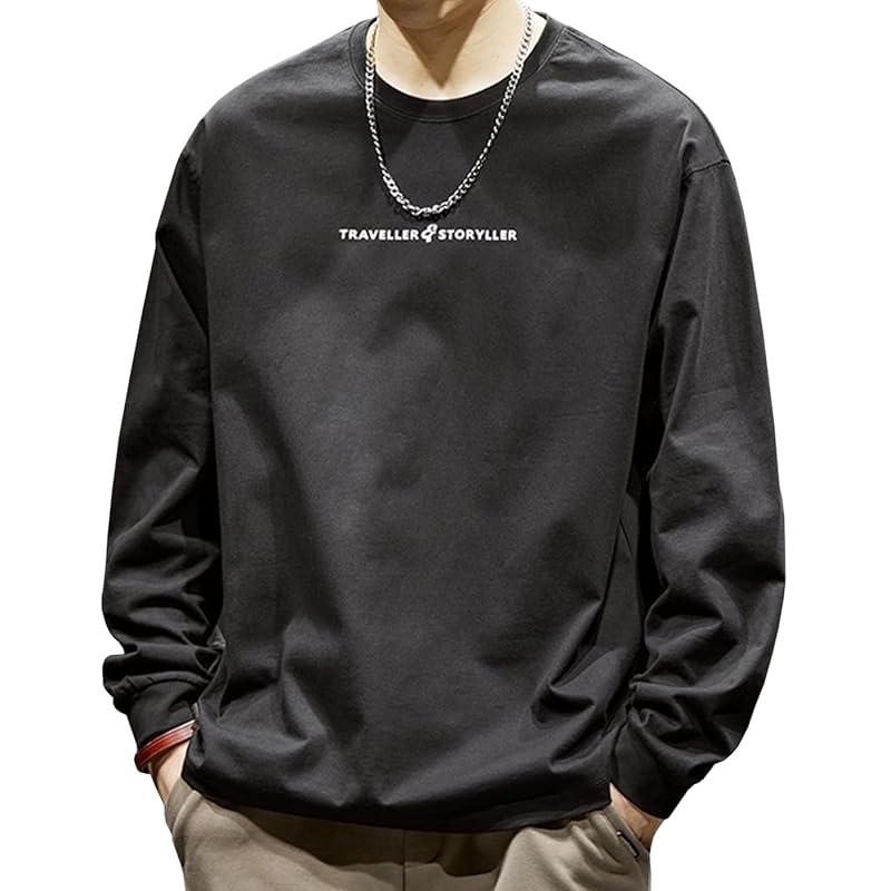 [EASTEMPO] t-shirt men's spring long sleeve Fashionable cotton Plain color casual Relaxing large size (JP, alphabet, XL, black)