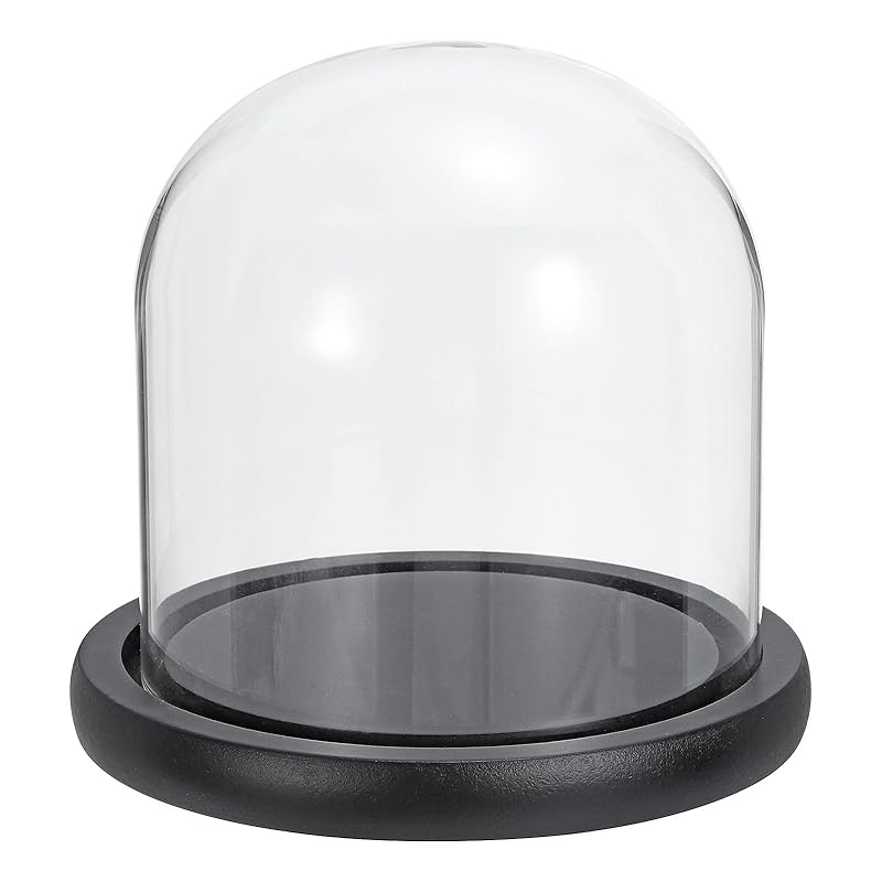 PATIKIL 15.5 x 15 cm clear cloche glass dome glass bell jar display case tabletop centerpiece With black wooden base for christmas interior decoration