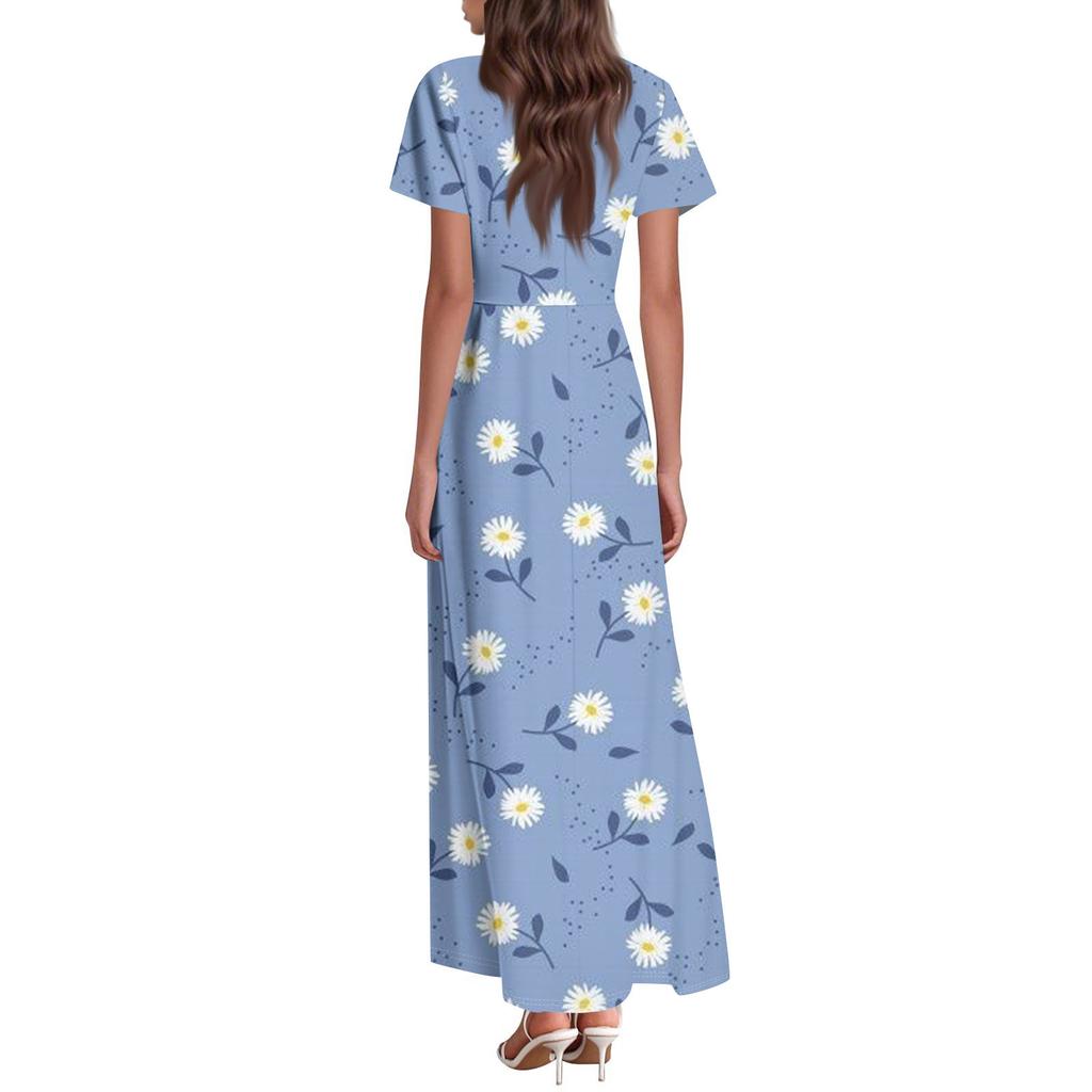 Женское повседневное платье с гавайским принтом, круглым вырезом, короткими рукавами и высокой талией
