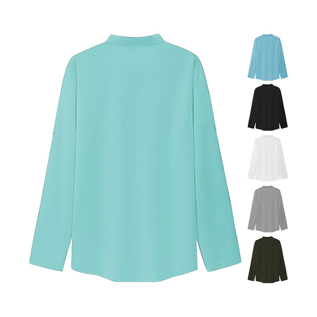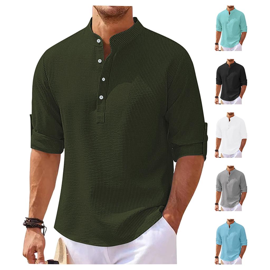 Мужская модная рубашка с воротником-стойкой, однотонная, повседневная, с длинными рукавами