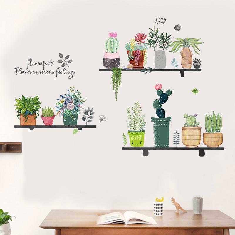 Самоклеящиеся наклейки на стену своими руками, зеленые растения в горшках, декор для гостиной, спальни, виниловое искусство