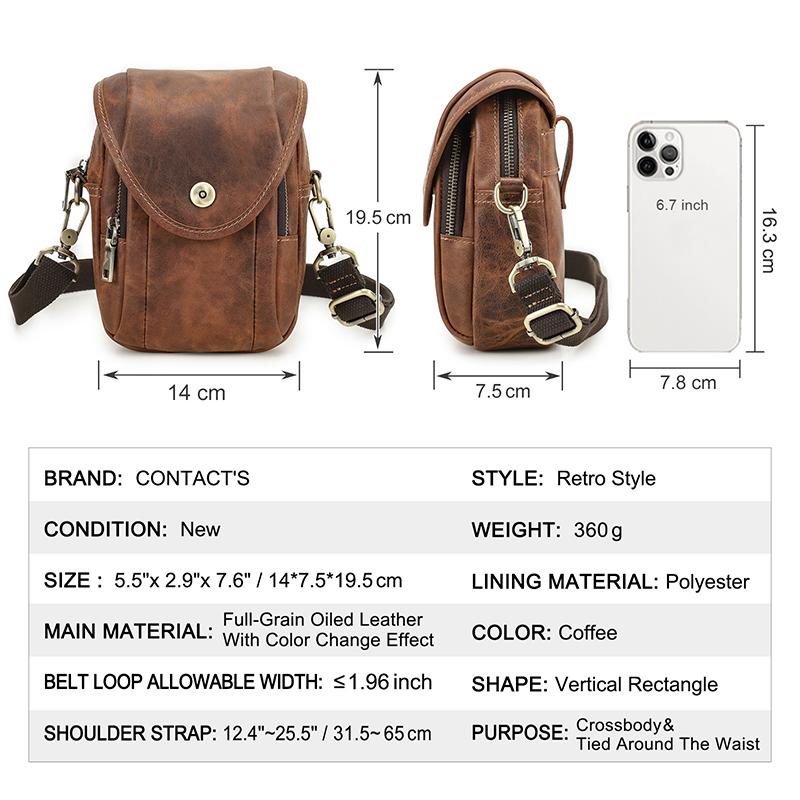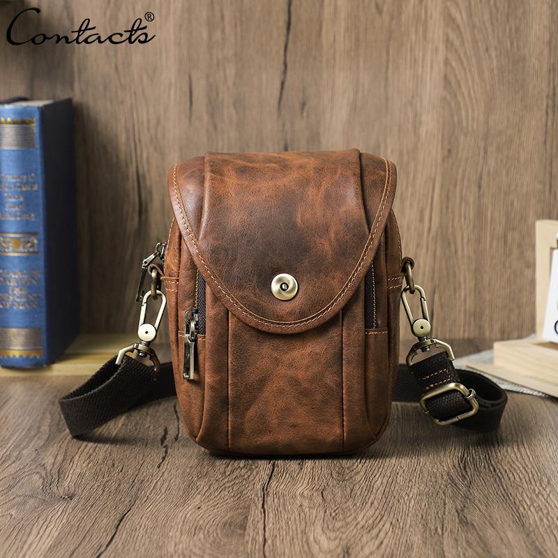 Мужская сумка CONTACT'S из натуральной кожи, через плечо, мужская поясная сумка, сумка для телефона с диагональю 6,7 дюйма