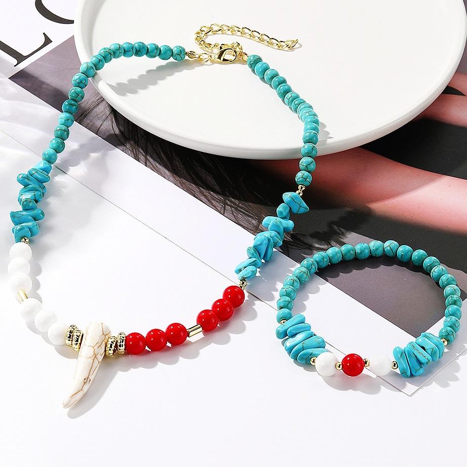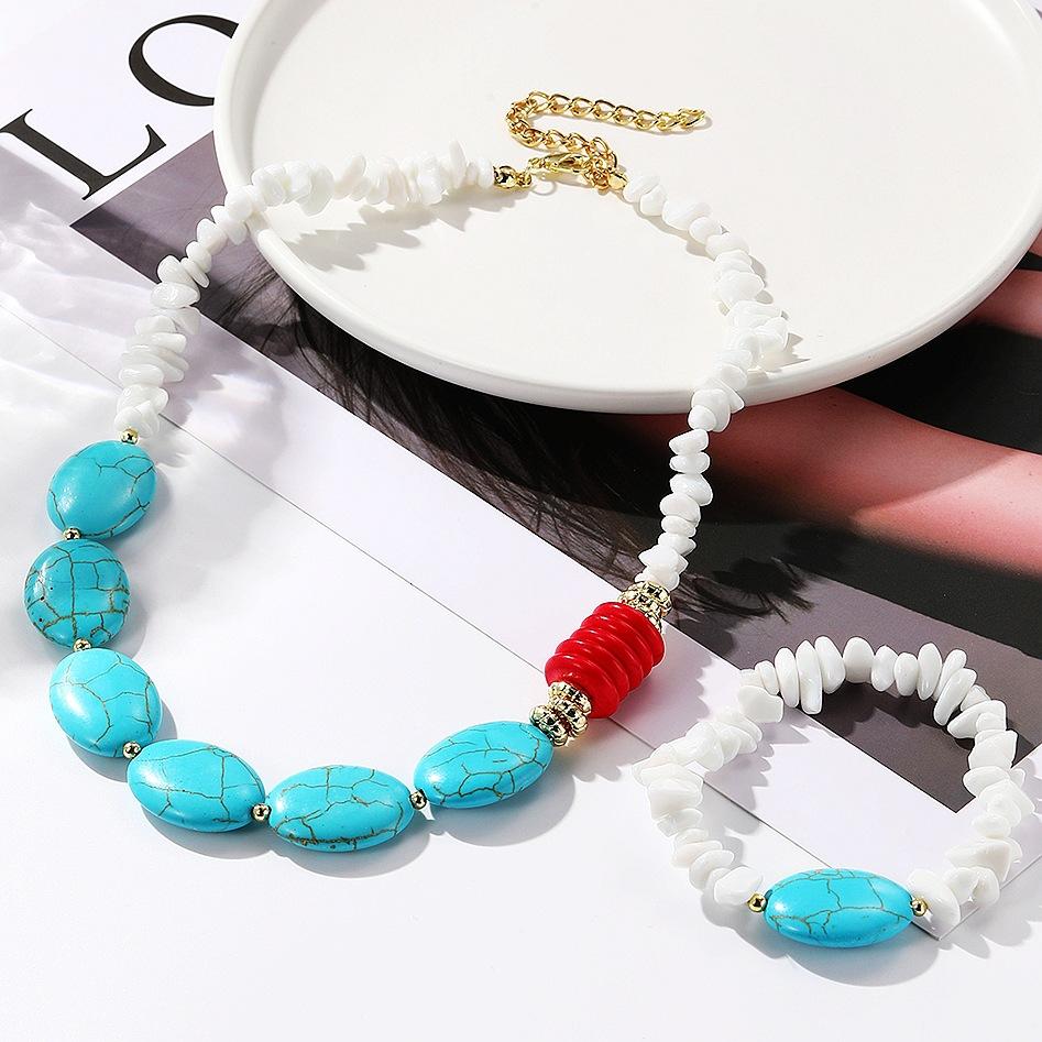 Ожерелье для женщин Богемный дизайн Бирюзовый Этнический стиль Ювелирные изделия Браслет Преувеличенный Винтажный Бирюзовый Богемные украшения