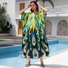Женская мода лето весна перо принт рукава 1/2 V-образный вырез свободная талия повседневные платья
