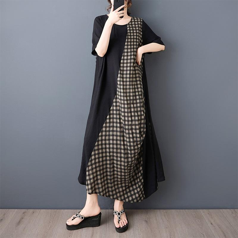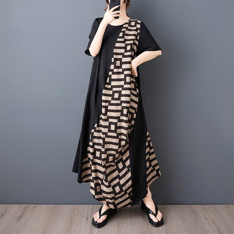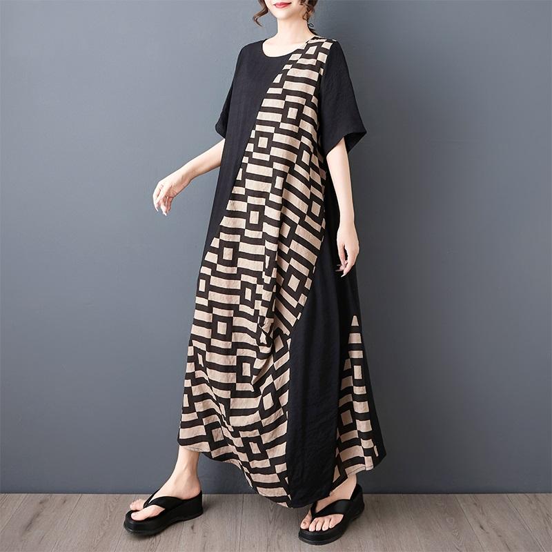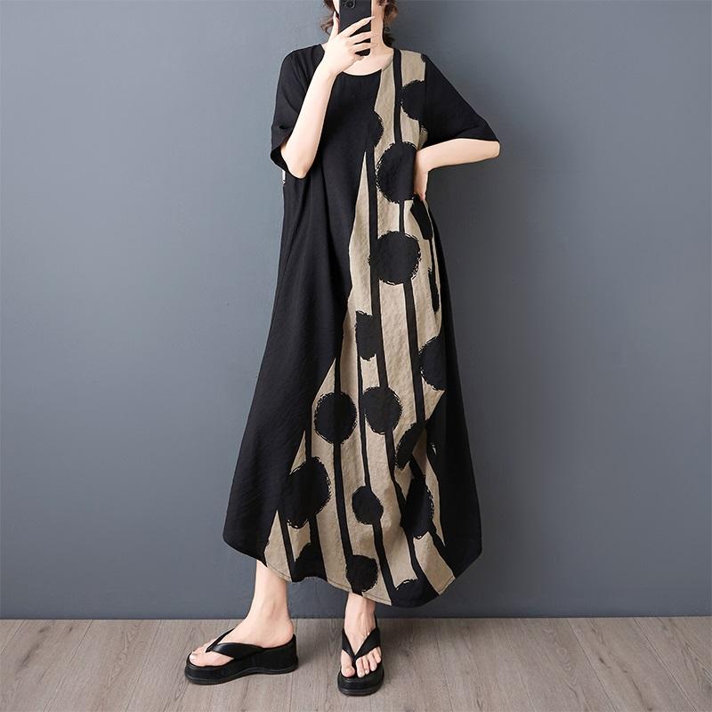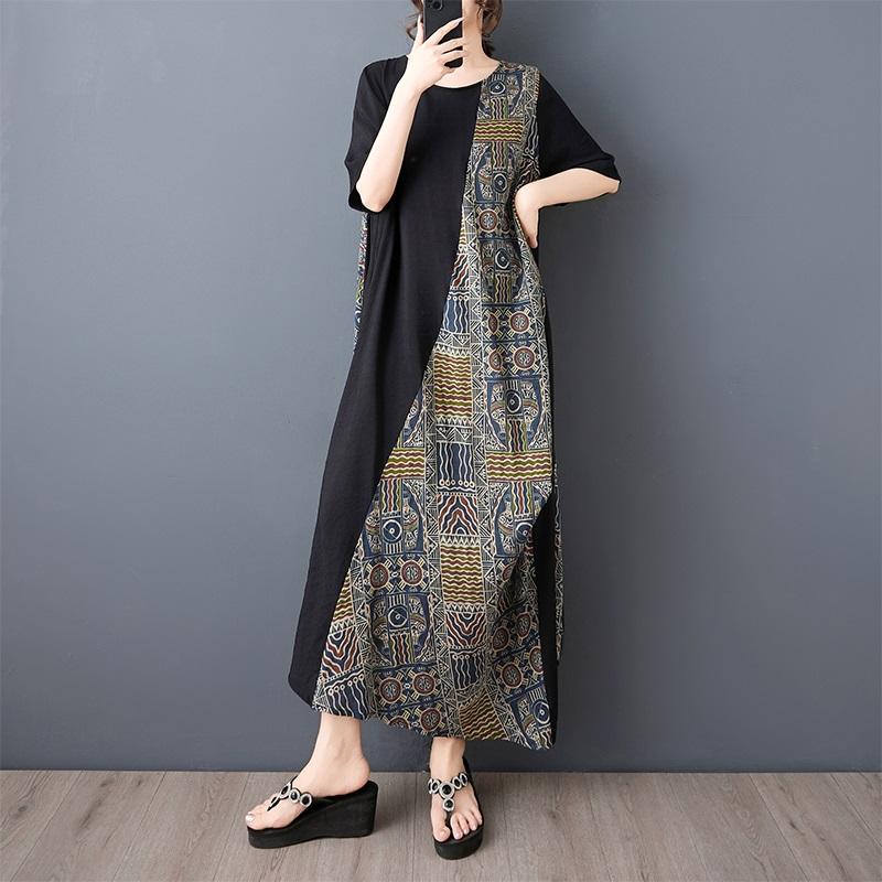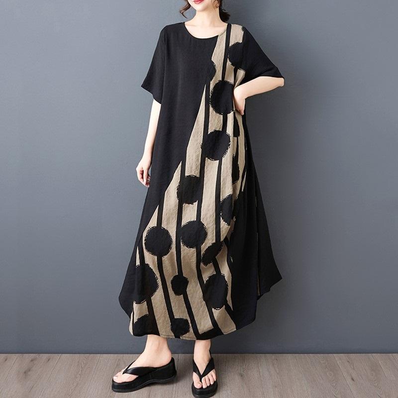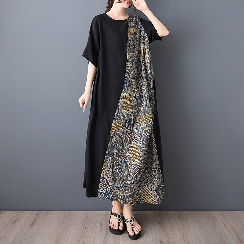 Новое хлопковое винтажное платье с цветочным принтом больших размеров с коротким рукавом для женщин, повседневное свободное длинное летнее платье