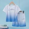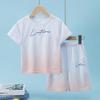 Детский летний быстросохнущий сетчатый костюм для мальчиков, дышащие шорты с короткими рукавами для девочек, комплект из 6 предметов, с эффектом градиента