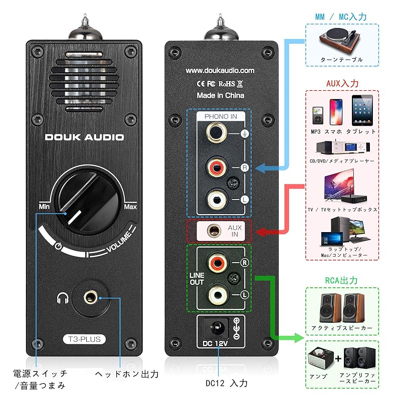 Multiple audio inputs for different purposes: Equipped with 3.5mm AUX and phono inputs, supports both MM/MC cartridges, has MC input impedance settings, supports various MM/MC record playersCompatible with players and other audio devices.