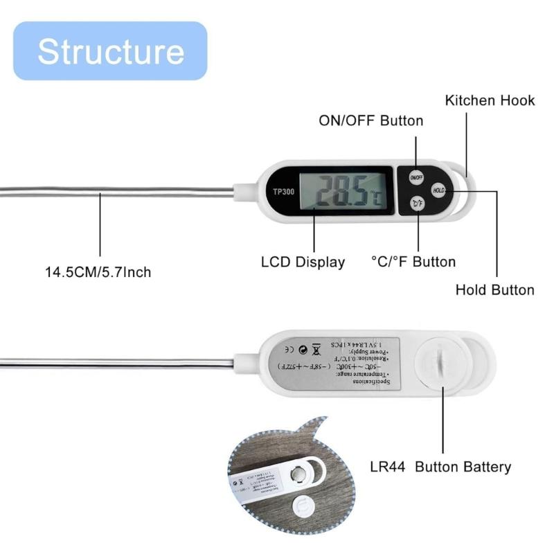 Независимо от того, выпекаете ли вы хлеб, жарите стейк или варите сироп, этот кухонный термометр предоставит вам точные данные о температуре, помогая вам легко контролировать различные сценарии приготовления пищи и открывать для себя кулинарный опыт профессионального шеф-повара.