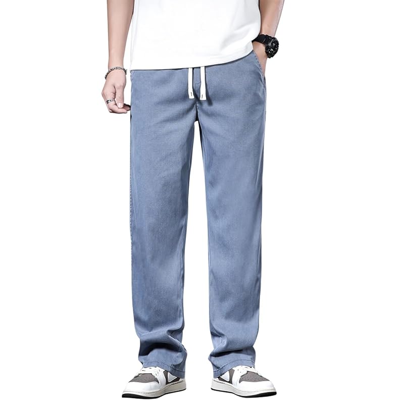 Мужские широкие зауженные брюки, прохладные на ощупь, впитывающие пот, быстросохнущие и тянущиеся. Он имеет гладкую и ровную текстуру, которая обеспечит вам комфорт даже в жаркие дни, и не слишком мешковат, что делает его освежающим для ношения весной, летом и осенью.
