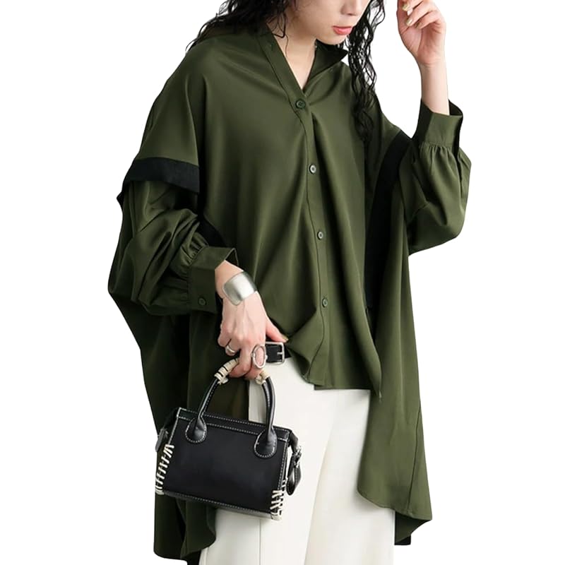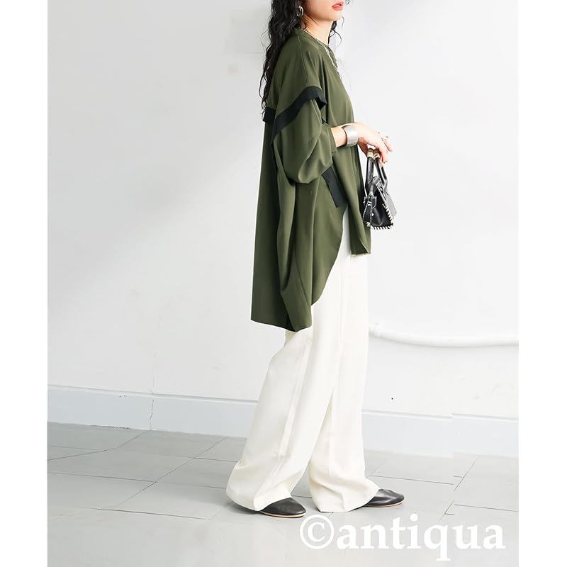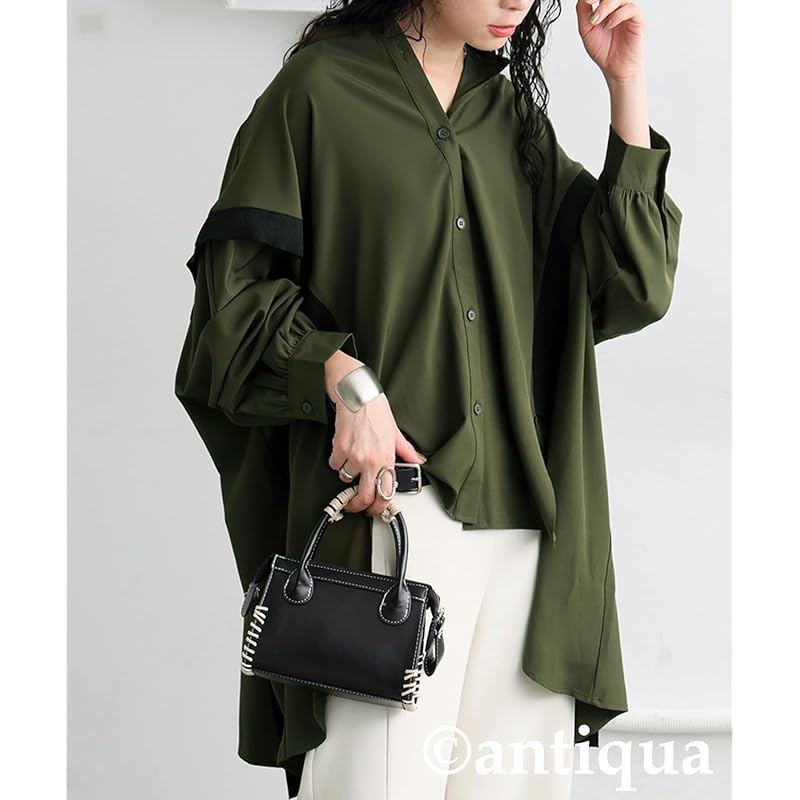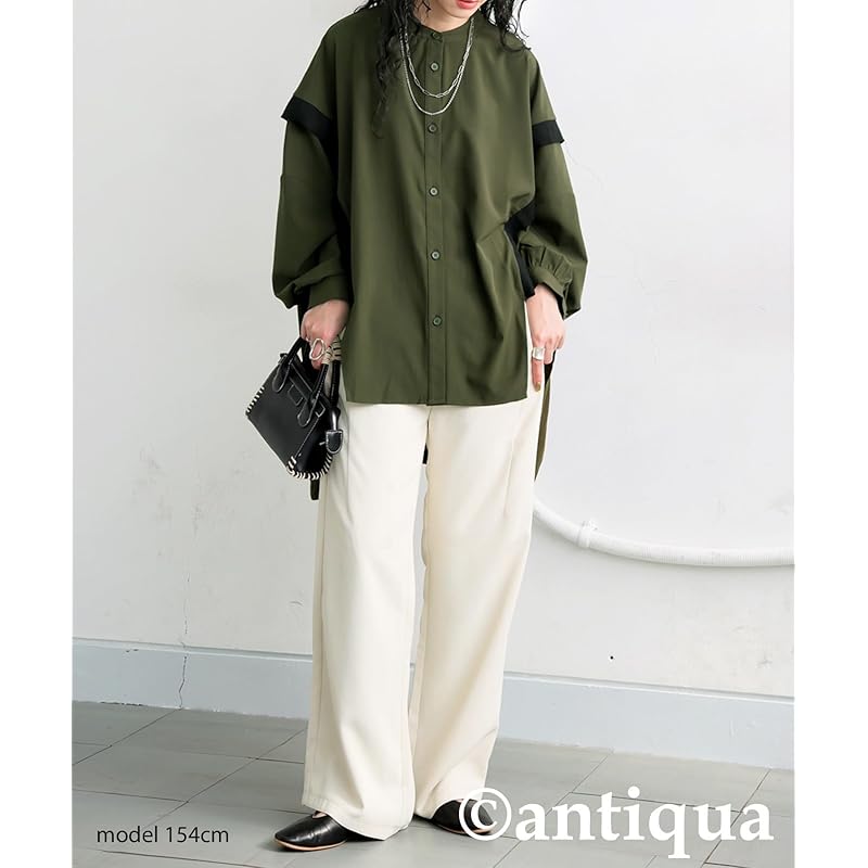 [antiqua] [Antica] switching shirt ladies tops long sleeve PY-00803 Onesize 02 khaki