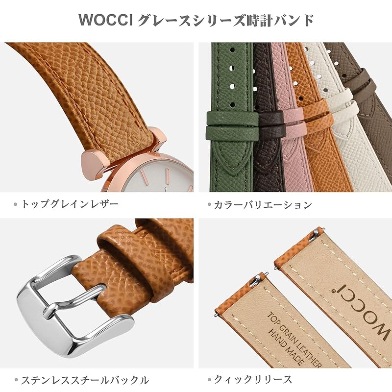[WOCCI] watch belt genuine leather grace series watch band 14mm top grain leather Quick Release Sesame color/silver buckle