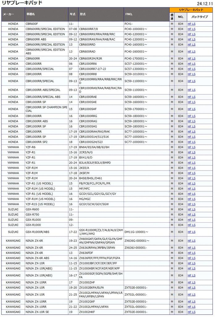 KITACO SBS Brake Pad 834HF Ceramic CBR600F CBR600RR CBR1000RR GSX-R1000 NINJA ZX-6R ZX-10R etc. 777-0834000