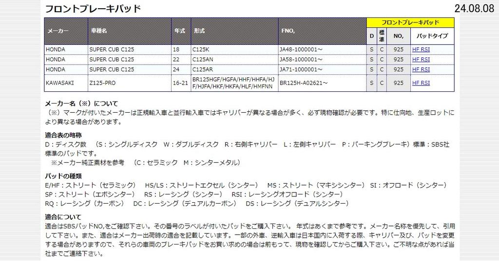 Тормозная колодка KITACO SBS 925RSI Sinter Metal Z125 PRO 777-0925077