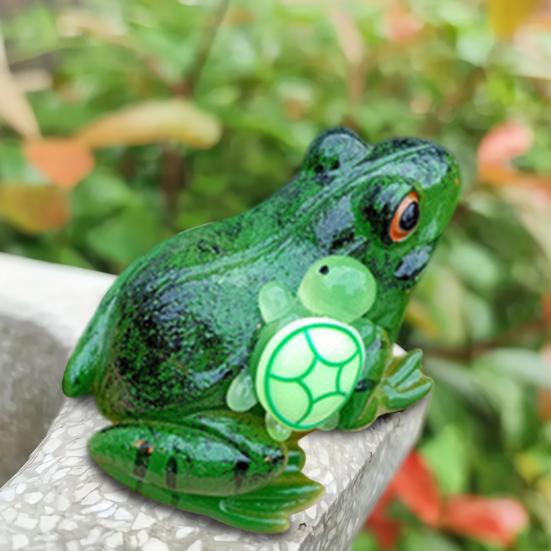 Замысловатые узоры лягушек и черепах: Это украшение, выполненное в форме очаровательной лягушки и крошечной черепахи, привлекает внимание своими замысловатыми деталями, добавляя причудливый штрих декору вашего сада или газона.