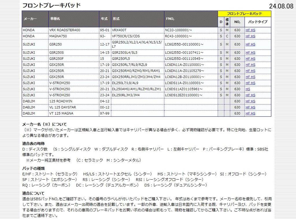 Тормозная колодка KITACO SBS 630HS Sinter Metal GSR250 VFR750F и т.д.. 777-0630020