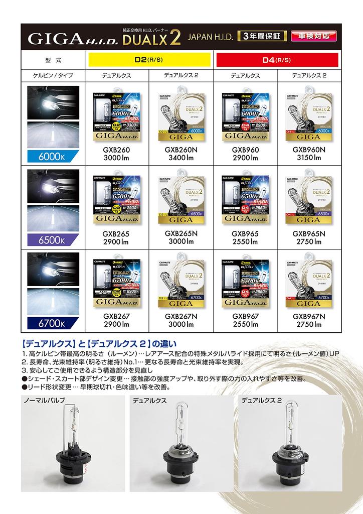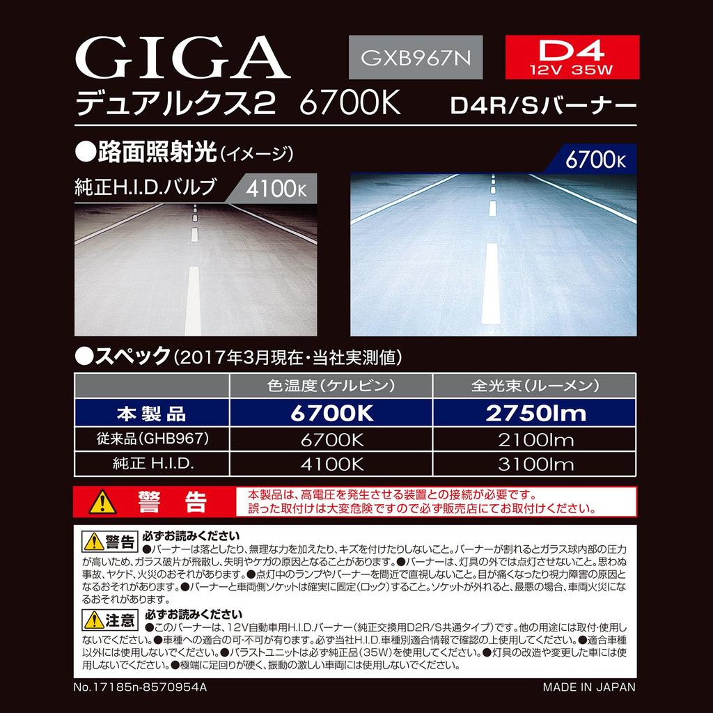 Carmate Оригинальная сменная HID лампа GIGA Dualx 2 D4R/S 6700K 2750лм Совместимая с техосмотром 3 года GXB967N