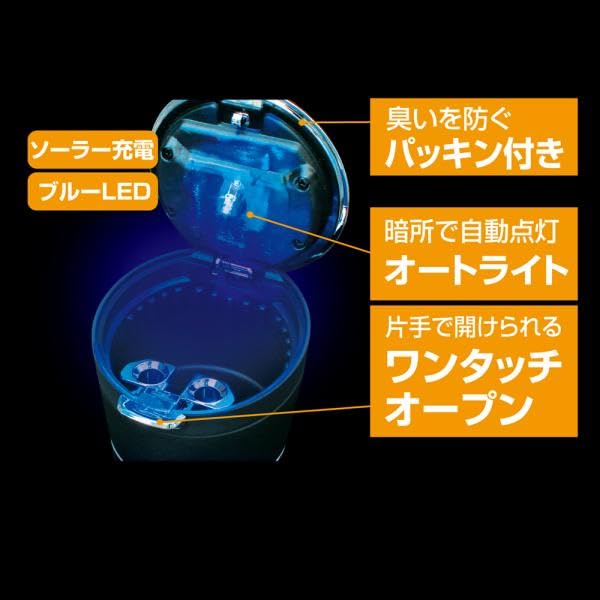 Napolex Fizz Car Ashtray, No Battery Replacement, Solar Battery, Built-in Light Sensor, Automatic Lighting, Easy Ash Disposal, Fully Washable, Ea