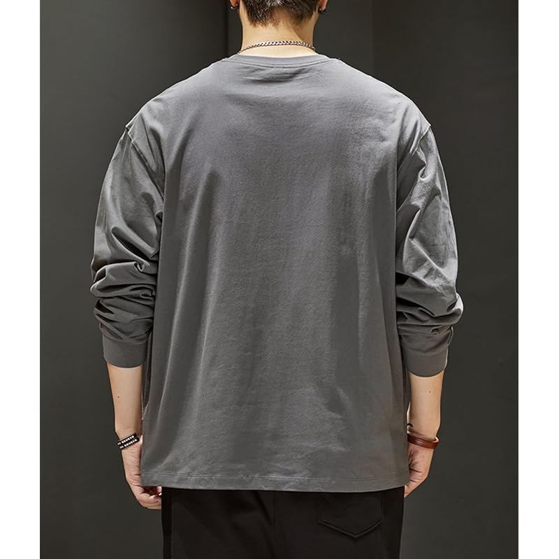 [EASTEMPO] футболка мужская весенняя с длинным рукавом Модная хлопковая однотонная повседневная Расслабляющая большого размера (JP, алфавит, M, серый)