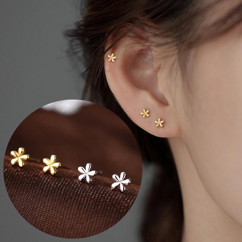 1 пара золотых минималистичных сережек, серебряные мини-серьги-гвоздики с маленькими цветами для женщин, серьги-гвоздики, украшения для пирсинга, подарок на день рождения