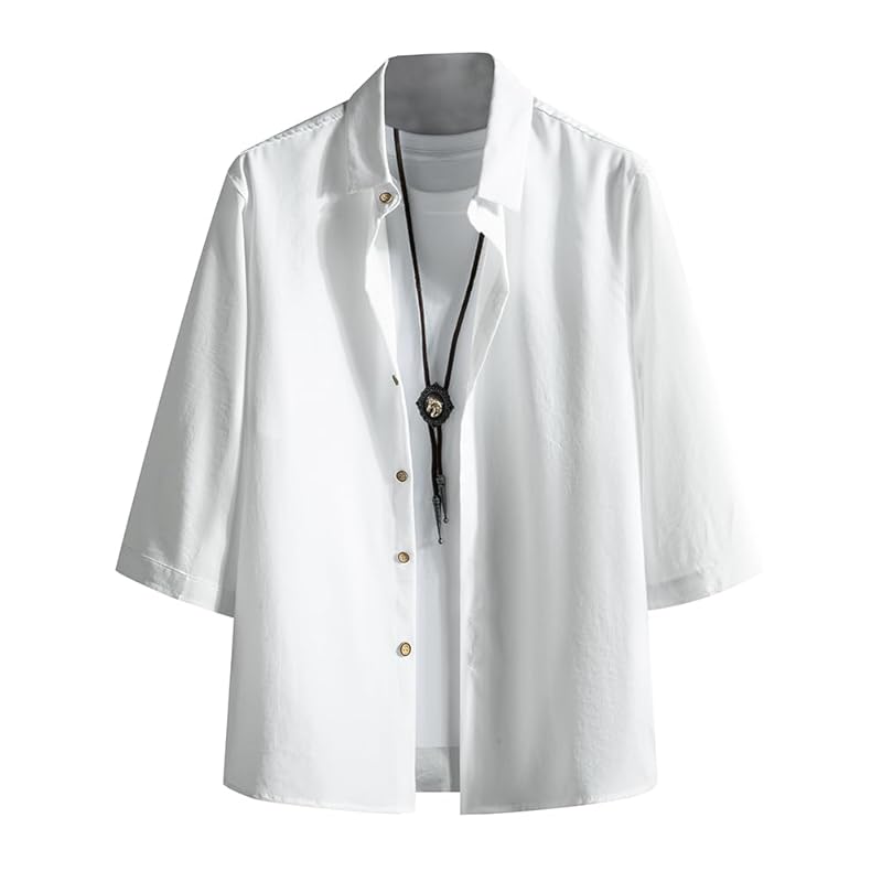 [FUZHIHUA] summer clothes men's shirt 3/4 sleeve short sleeve Plain color simple tops Relaxing casual Fashionable large size