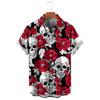 Модные мужские рубашки с цветочным принтом в виде черепа, забавный 3D-принт черепа, уличная одежда, футболки с коротким рукавом, гавайские рубашки с принтом на лацканах для мужчин