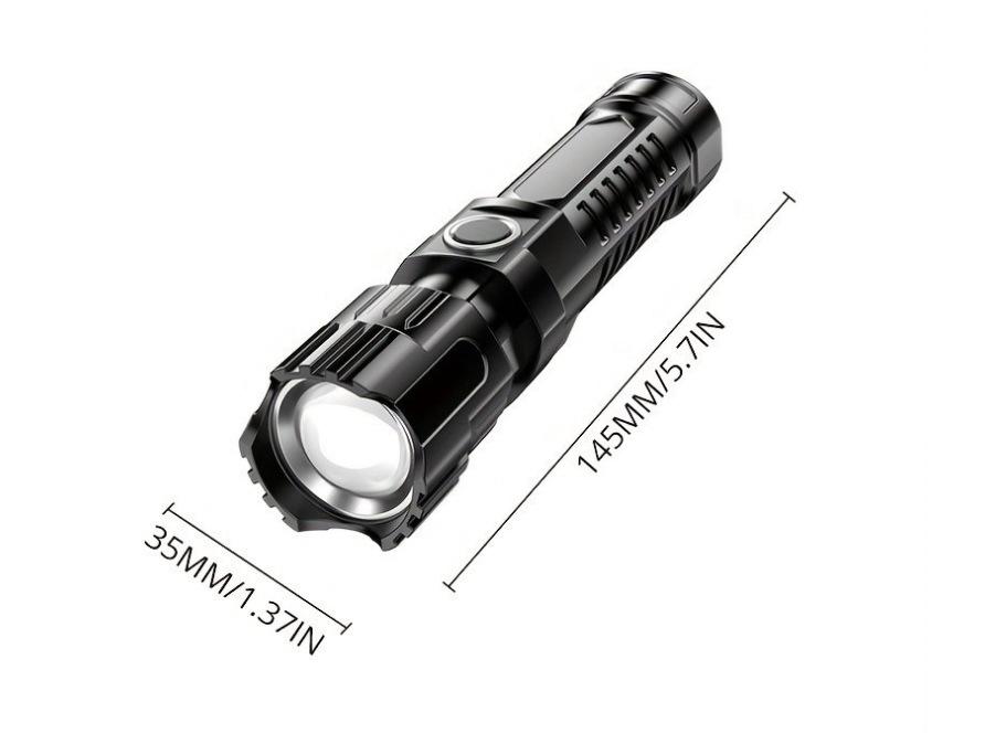 Portable Rechargeable Long-Range LED Flashlight – Outdoor, Multi-Function, Zoomable, Strong Light Focus.