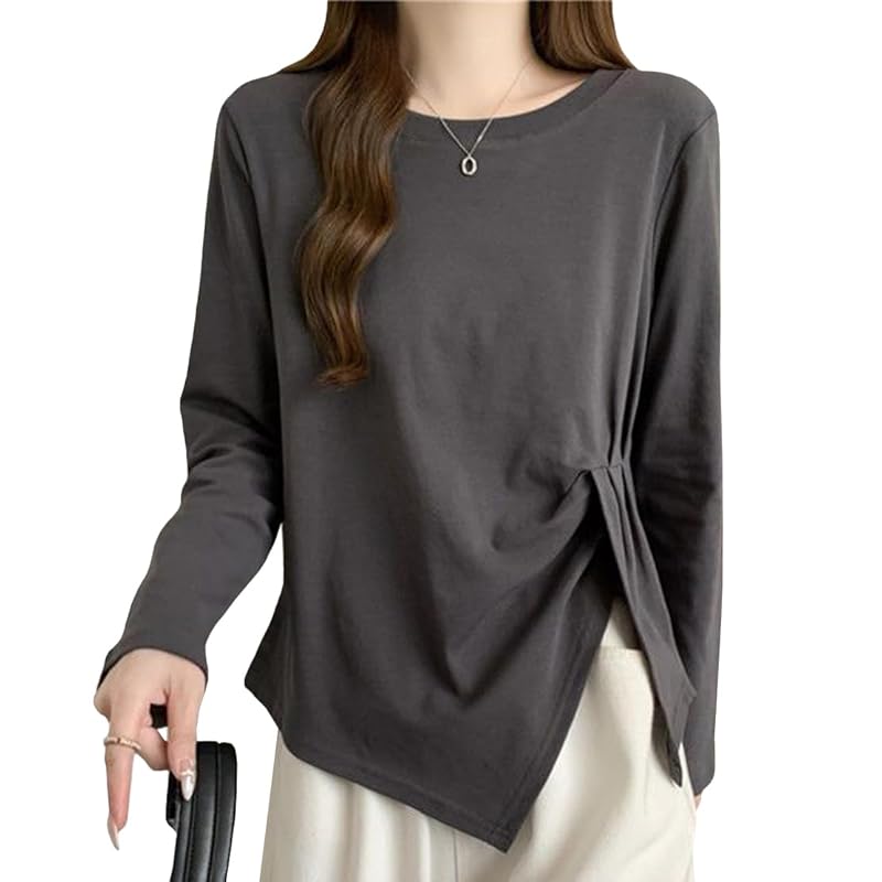 [ODFMCE] t-shirt ladies long sleeve spring cotton Plain color Fashionable Beautiful Relaxing big size is (JP, alphabet, 2XL, gray)