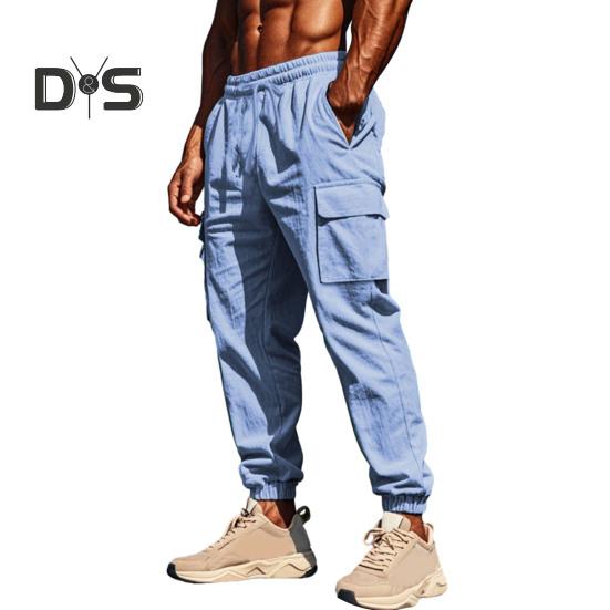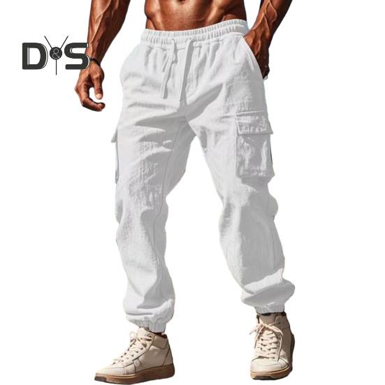 Премиум Материал: Эти мужские брюки, изготовленные из высококачественной хлопковой смеси, мягкие и приятные на ощупь, обеспечивая комфорт в течение всего дня.. Затягивающийся шнурок на талии позволяет легко отрегулировать размер и добиться идеальной посадки.