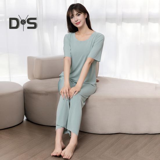 Эти пижамы, изготовленные из дышащих и легких тканей, сохранят прохладу в теплые летние дни.. Свободный крой свитера с короткими рукавами и широких брюк обеспечивает одновременно стиль и удобство..