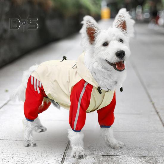 Дождевик для собак, водонепроницаемый дождевик с капюшоном, пончо с полным покрытием, светоотражающими полосками и отверстием для поводка для маленьких и средних собак