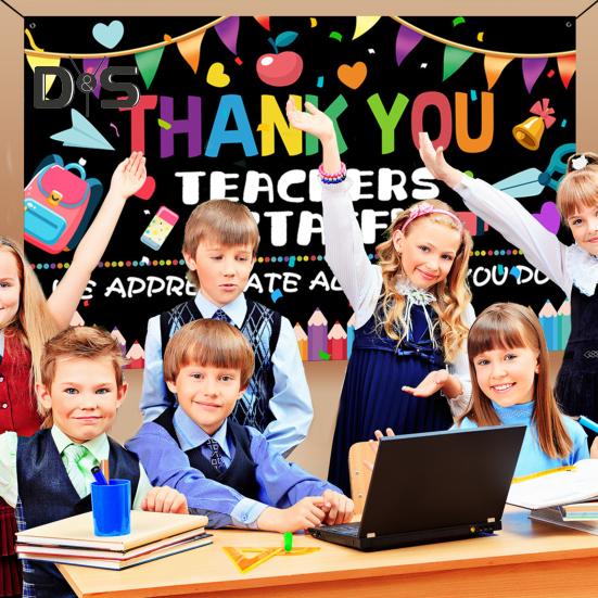 Универсальная пригодность для случаев: Идеально подходит для оформления Недели благодарности учителям, школьных мероприятий, вечеринок по случаю выхода учителей на пенсию, празднования возвращения в школу и мероприятий по случаю окончания учебного года.. Выразите свою признательность с помощью этого привлекательного баннера, который заставит учителей почувствовать себя по-настоящему особенными!