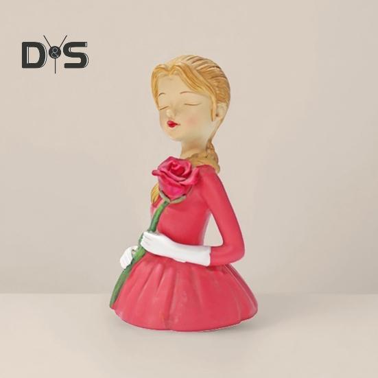 Девушка держит розы статуэтка ручной работы из смолы девушка цветок настольная статуэтка для домашнего офиса стол центральное украшение