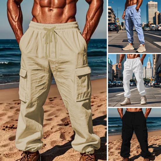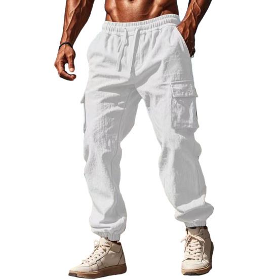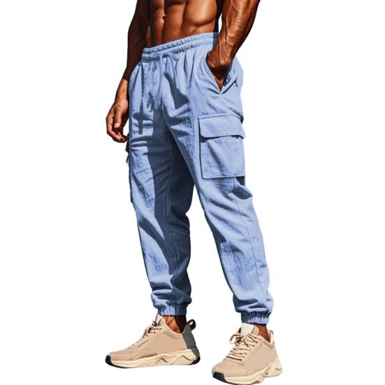 Премиум Материал: Эти мужские брюки, изготовленные из высококачественной хлопковой смеси, мягкие и приятные на ощупь, обеспечивая комфорт в течение всего дня.. Затягивающийся шнурок на талии позволяет легко отрегулировать размер и добиться идеальной посадки.