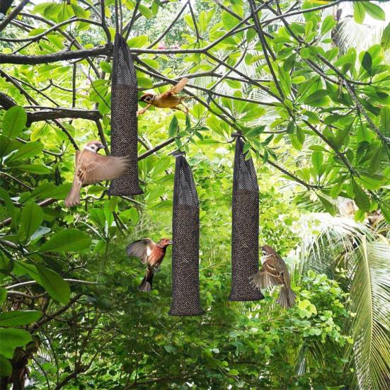 Сетка, дружественная птицам: Мягкая и тонкая сетчатая конструкция этой кормушки-носка подходит для щеглов и других мелких птиц, предлагая им удобную и доступную точку кормления на открытом воздухе.
