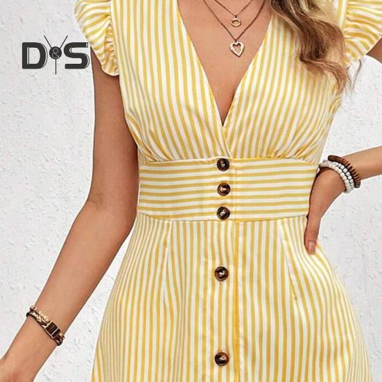 Легкая повседневная элегантность: Ощутите идеальное сочетание комфорта и стиля в этом платье, идеально подходящем для повседневной жизни.. Его полуоткрытый дизайн с пуговицами обеспечивает удобство ношения, одновременно подчеркивая вашу красоту и изящество.