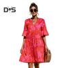 Представляем нашу летнюю пляжную женскую юбку — повседневную и симпатичную юбку А-силуэта, которая идеально подойдет для любого случая.. Это стильное платье имеет привлекательный V-образный вырез и набивной рисунок, который добавляет элегантности.. Эффектные рукава-фонарики придают изделию ретро-шарм и подчеркивают вашу индивидуальность..
