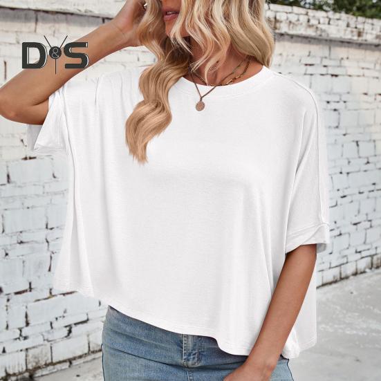 Улучшите свой повседневный гардероб этой шикарной женской футболкой.. Эта однотонная футболка, изготовленная из приятного для кожи и удобного полиэфирного волокна, имеет стильный дизайн с короткими рукавами и рукавами «летучая мышь» для дополнительного комфорта..